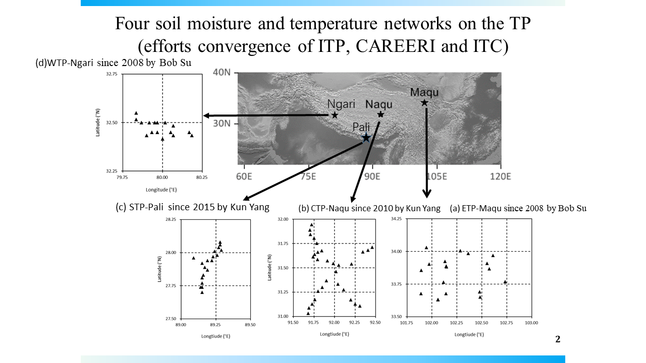 on the Tibetan Plateau, J. Geophys. Res. Atmos., 122, 5780–5792, doi:10.1002/2016JD026388. (2) Yang, K., J. Qin, L. Zhao, et al. 2013: A Multiscale Soil Moisture